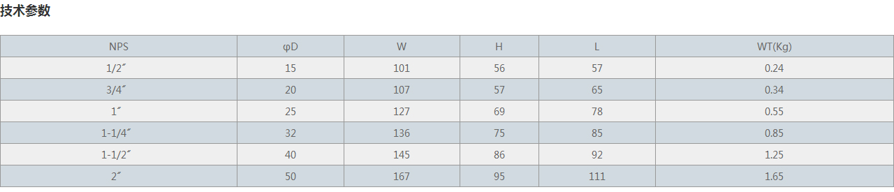 | NPS | φD | W | H | L | WT(Kg) |
