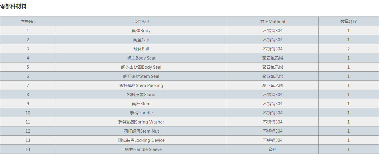 | 1 | 閥體Body | 不銹鋼304 | 1 |