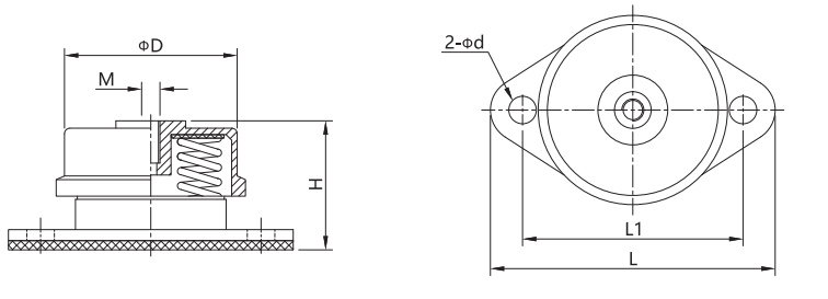 FZD型阻尼彈簧減震器產(chǎn)品主要特點(diǎn)與用途:FZD型阻尼彈簧減震器又稱預(yù)應(yīng)力彈簧減振器,具有鋼制彈簧減震器的低頻率和阻尼大的雙重優(yōu)點(diǎn),消除鋼彈簧固有的共振振幅現(xiàn)象。該系列產(chǎn)品共20種規(guī)格,其單只荷載15kg-4800kg,各類荷載所應(yīng)對的固有頻率2.0Hz-4.6Hz,阻尼比0.065。該系列減震器荷載范圍廣, 便于用戶選擇,固有頻率低,隔振效果好,并且結(jié)構(gòu)緊湊,外形尺寸較小,安裝更換方便,使用安全可靠,工作壽命長,對工作環(huán)境適應(yīng)性強(qiáng),并能在-40℃-110℃環(huán)境下正常工作。對積極隔振、消極隔振、沖擊振動和固體傳聲的隔離均有明顯的效果。是隔離振動降低噪聲、治理振動公害、保護(hù)環(huán)境的理想減振器。ZTG型上下均可固定.