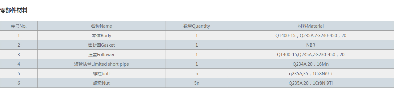 | 6 | 螺母Nut | 5n | Q235A,20,1Cr8Ni9Ti |